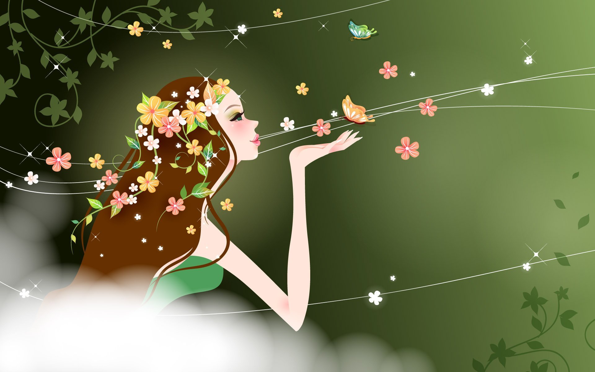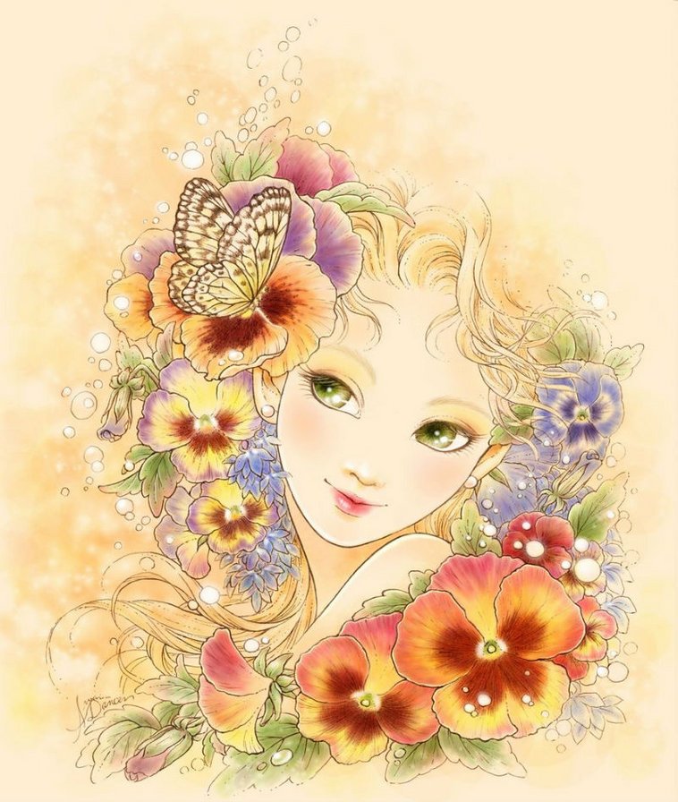 Девушка рисованная в цветах