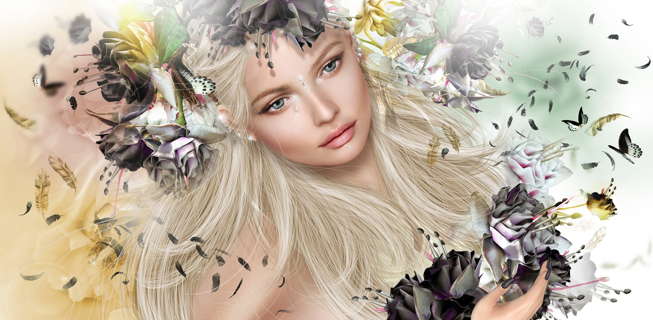 Нарисованная девушка всцветах