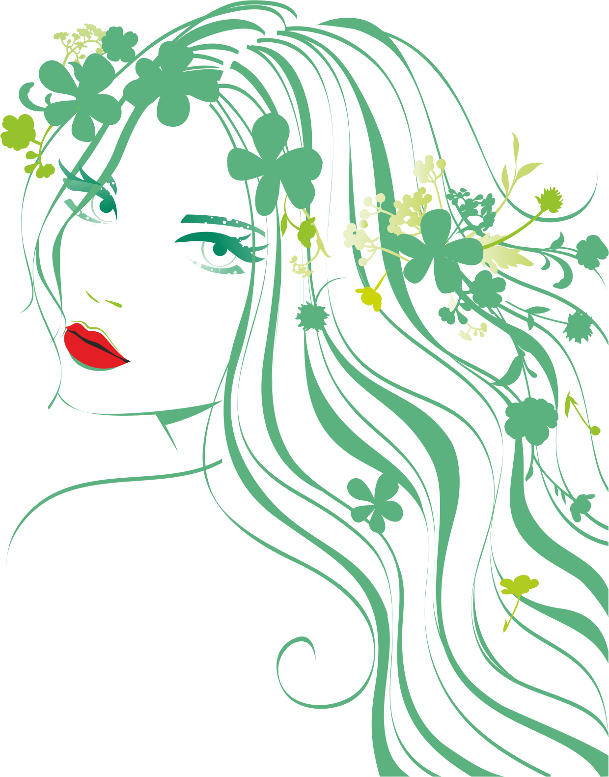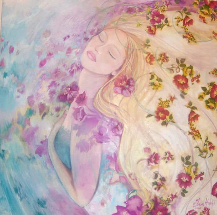 ![Девушка рисованная в цветах]()