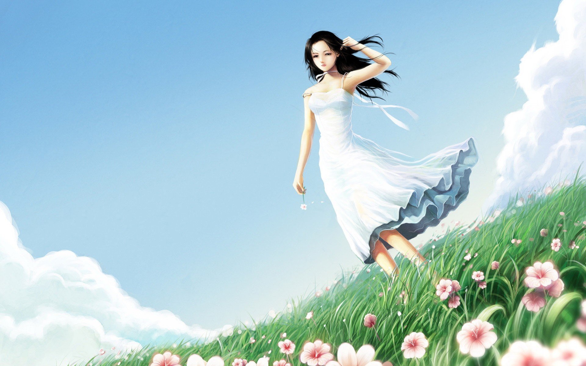 ![Девушка в цветах рисунок]()