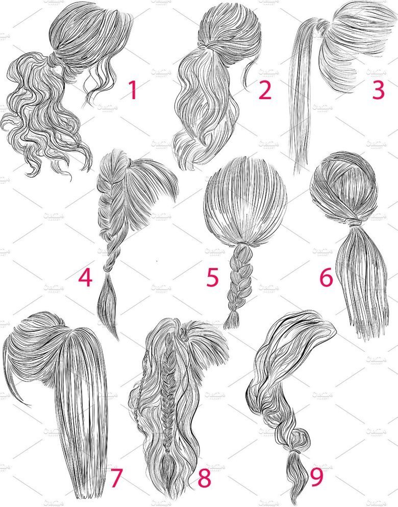Волосы и прически для срисовки цветные