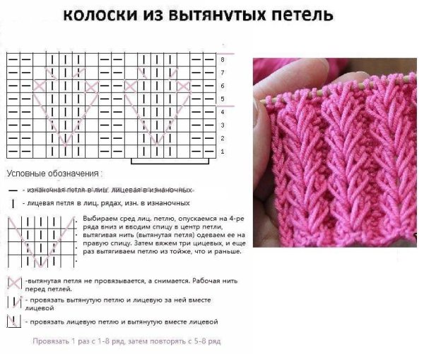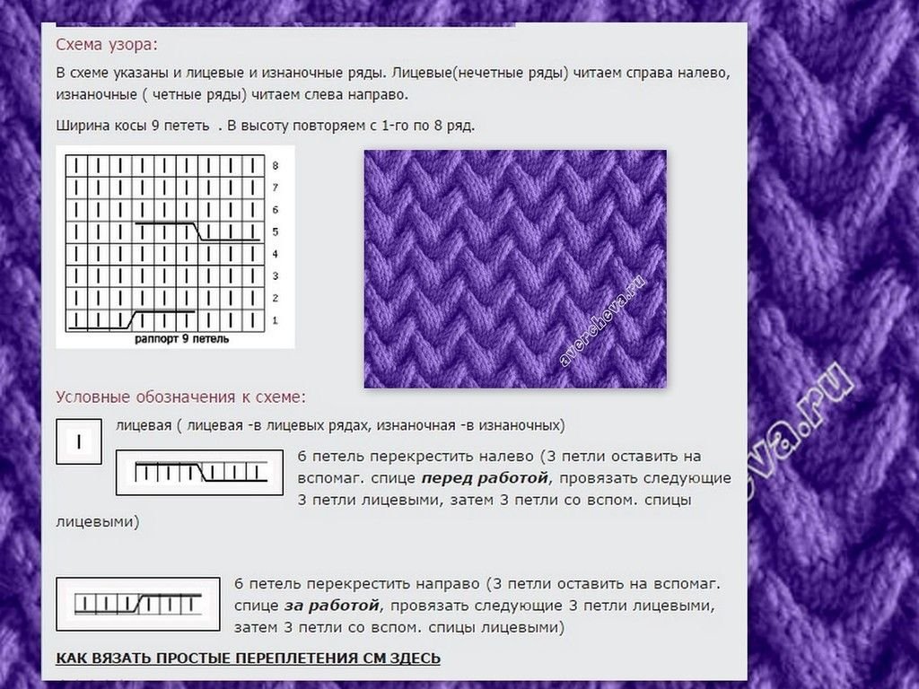 ![Вязки спицами схемы из лицевых и изнаночных]()