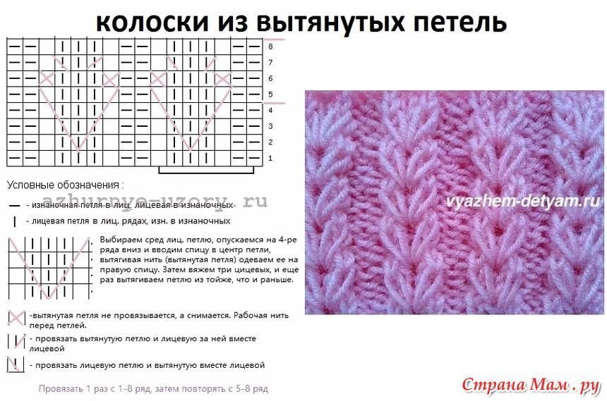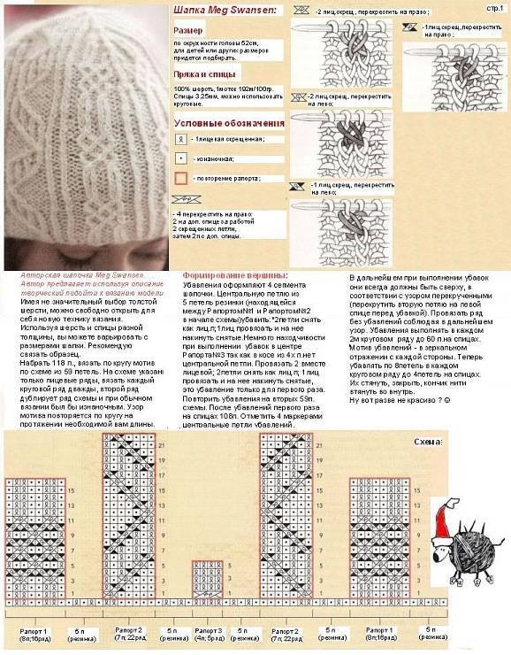 ![Вязание спицами узоры косы и жгуты схемы с описанием для шапок]()