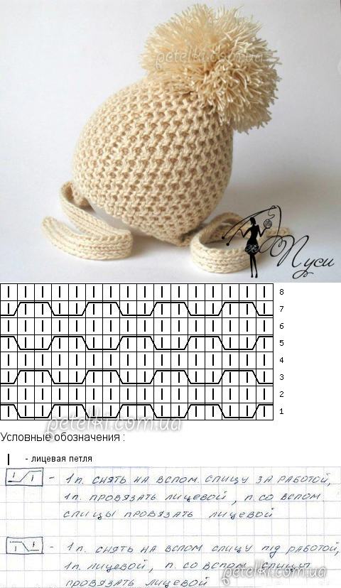 ![Вязаная шапка с помпоном спицами схема и описание]()
