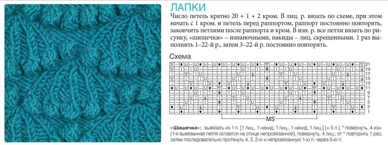 ![Ажурные узоры для толстой пряжи спицами схемы]()