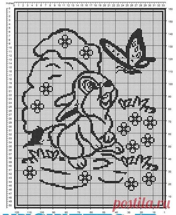 ![Детский орнамент для вязания спицами схемы Единорог]()