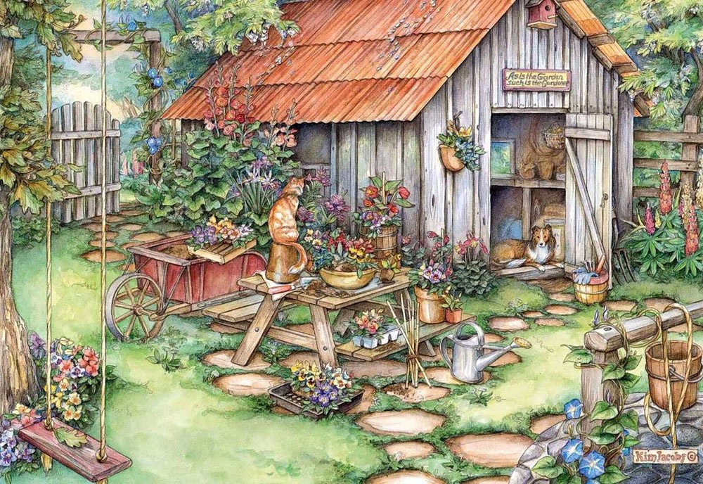 ![Kim Jacobs художник коттедж кошки]()