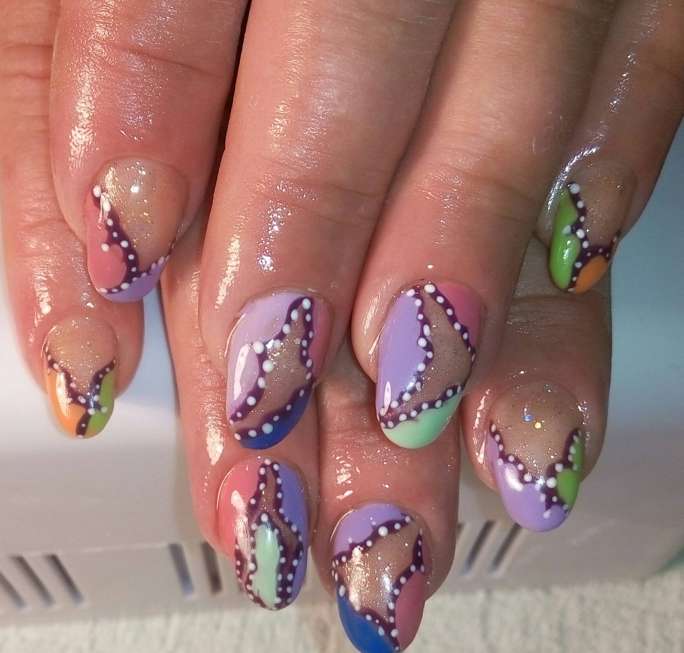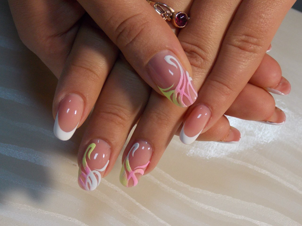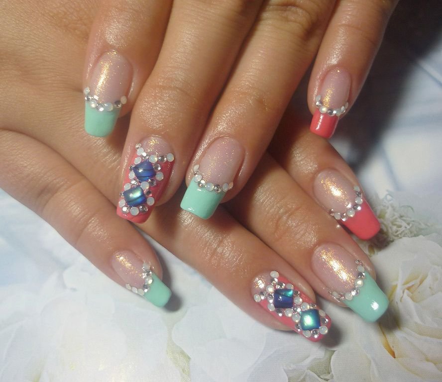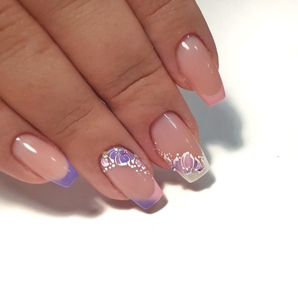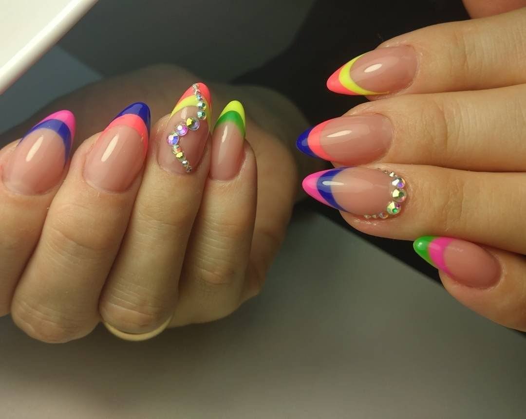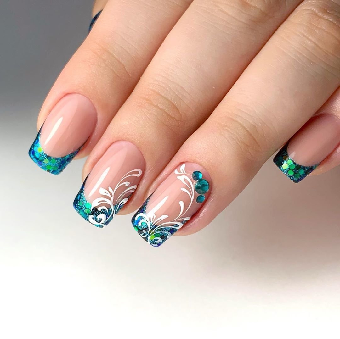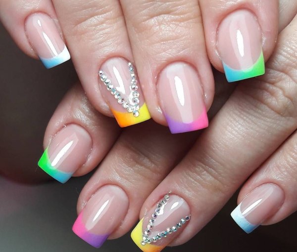 Причудливый и невероятно стильный маникюр френч с рисунками и стразами в различных ярких цветах - это настоящее произведение искусства на твоих ногтях! Классический френч-маникюр с изящными белыми кончиками становится еще более привлекательным благодаря оригинальным рисункам, которые можно выбрать по своему вкусу. Сочетание разноцветных стразов добавляет маникюру дополнительную яркость и блеск, делая его непременным аксессуаром для любого особого случая или просто для повседневного использования. Этот красивый маникюр френч с рисунком и стразами разноцветный - идеальный способ выразить свою индивидуальность и добавить шика и элегантности своему образу.