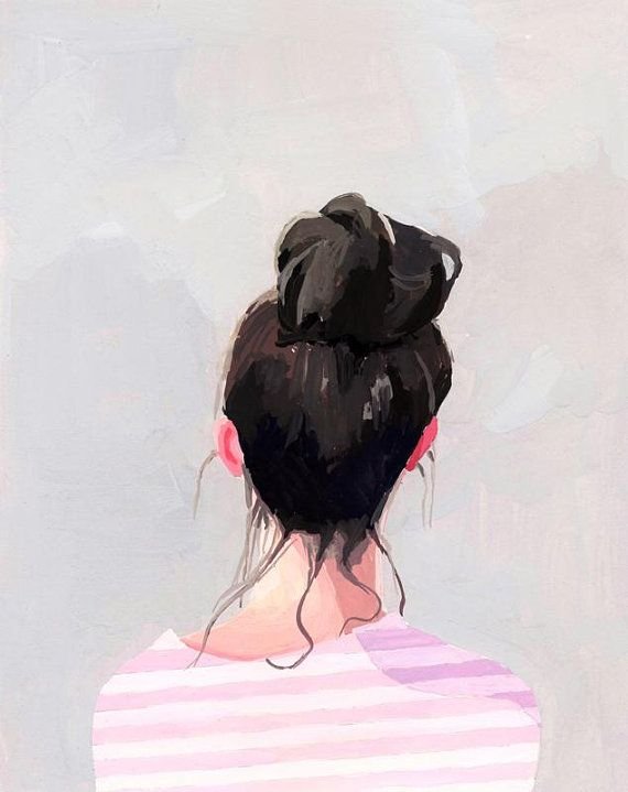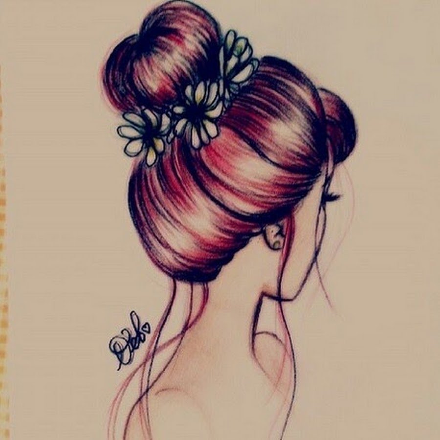 ![Нарисованная девушка с пучком]()