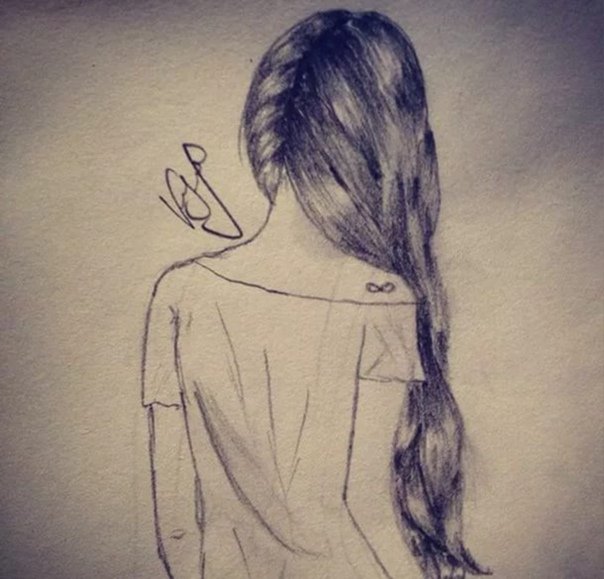 ![Рисунки карандашом девушки со спины]()