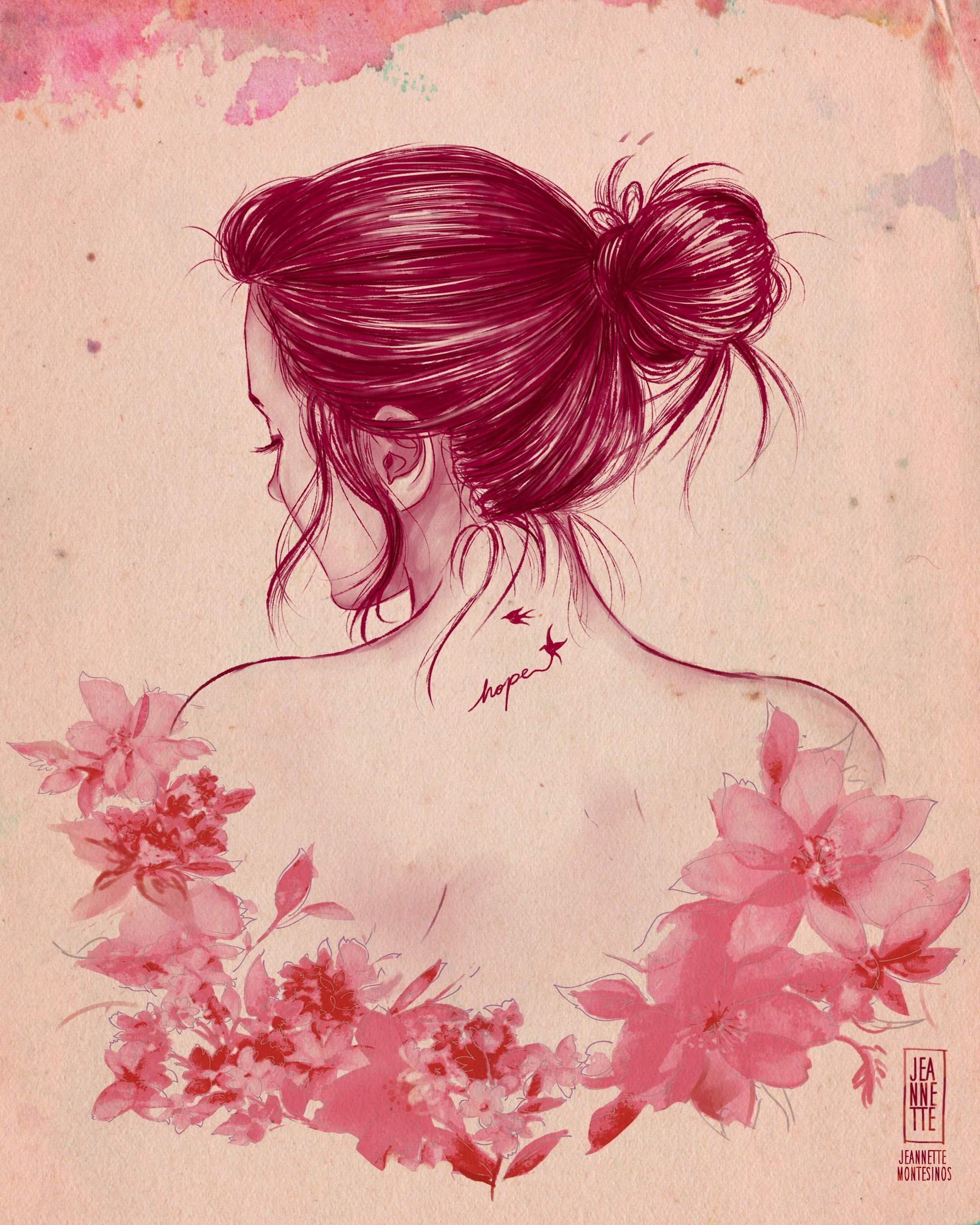 Нарисованная девушка с пучком