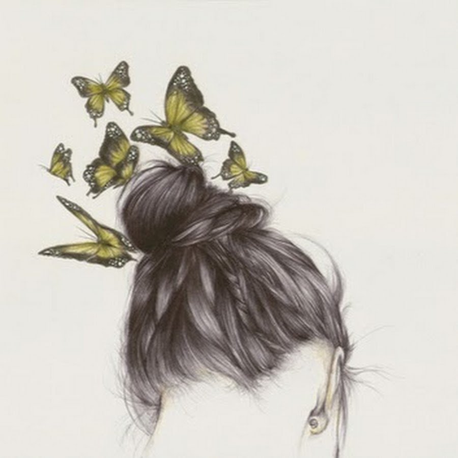 ![Девушка с бабочками в волосах]()