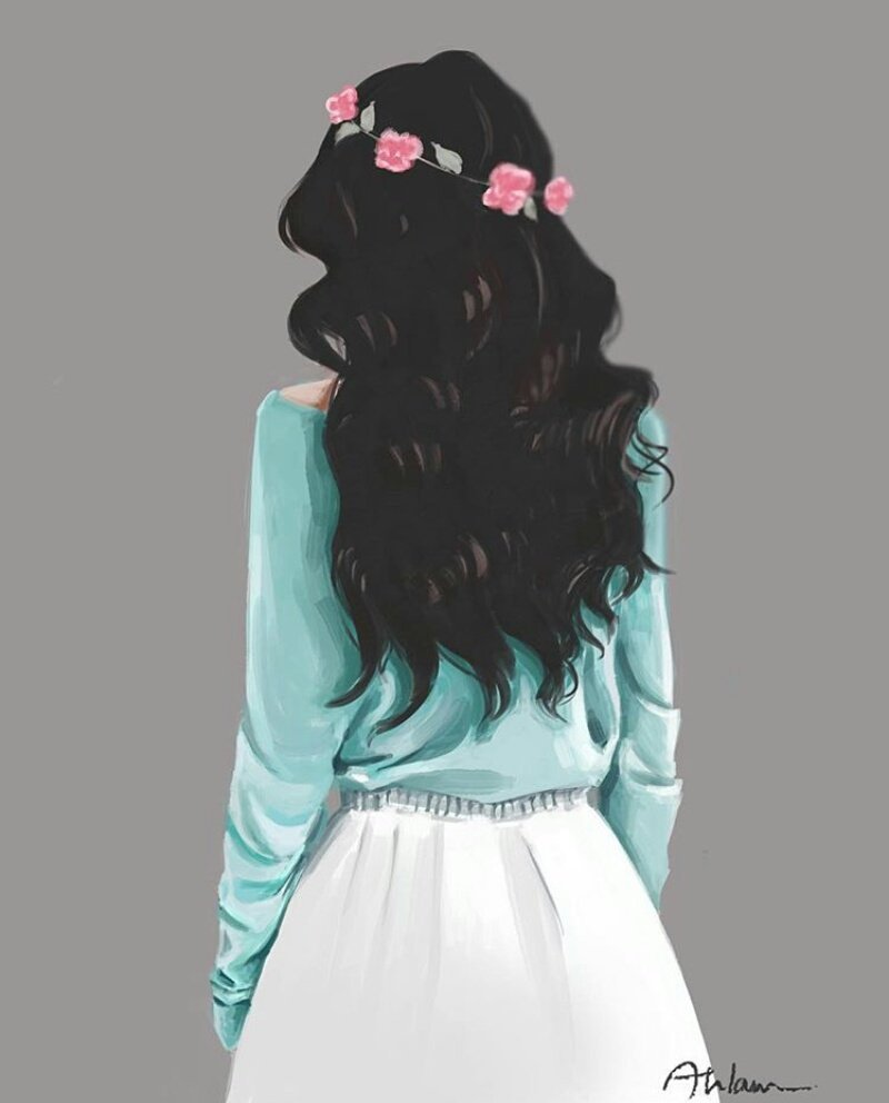 ![Нарисованная девушка со спины]()