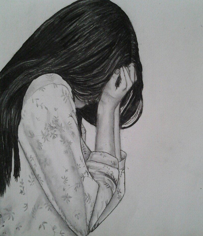 ![Грустная девушка рисунок]()