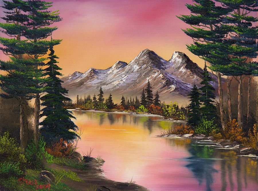 ![Горное озеро маслом Боб Росс]()