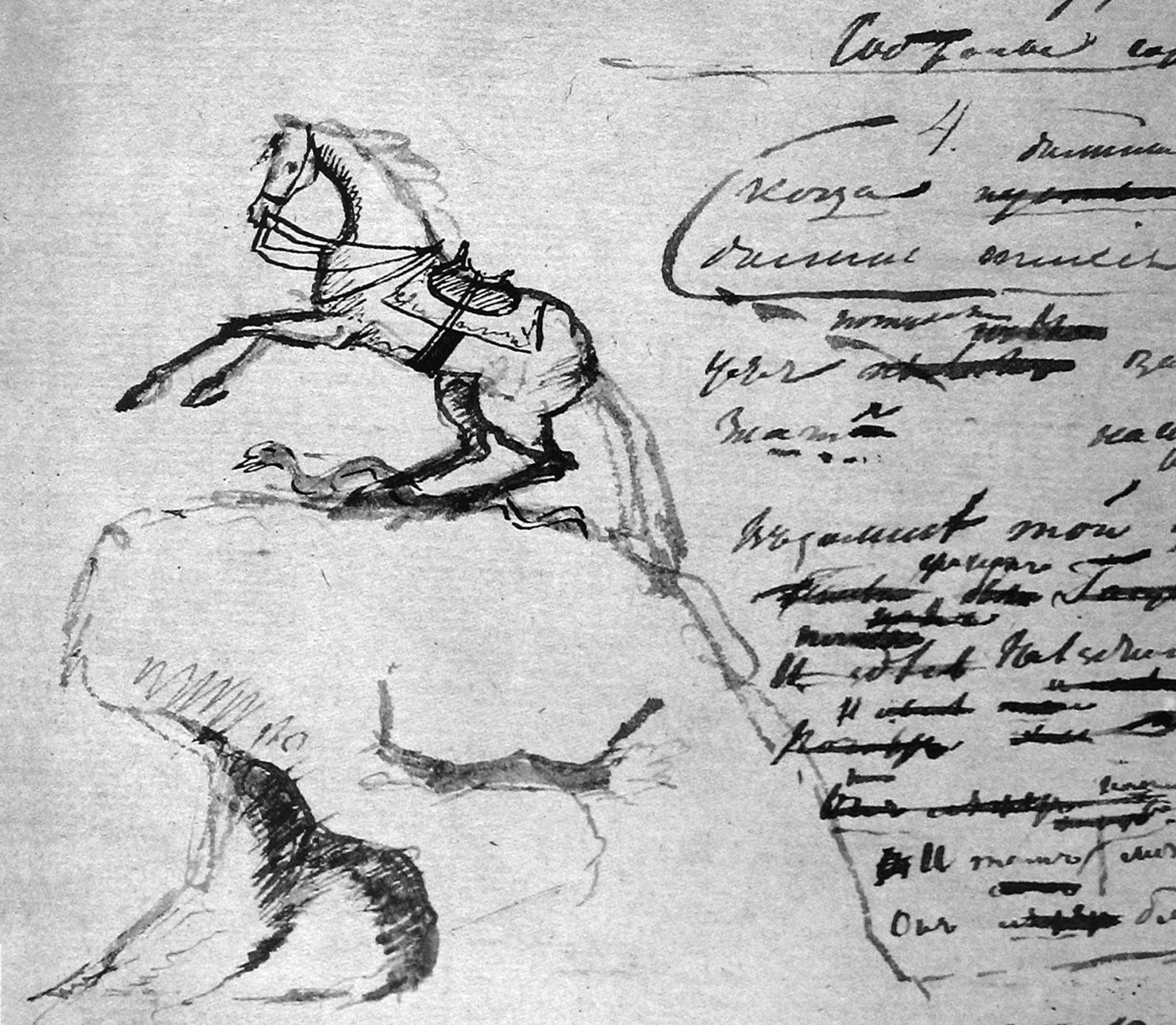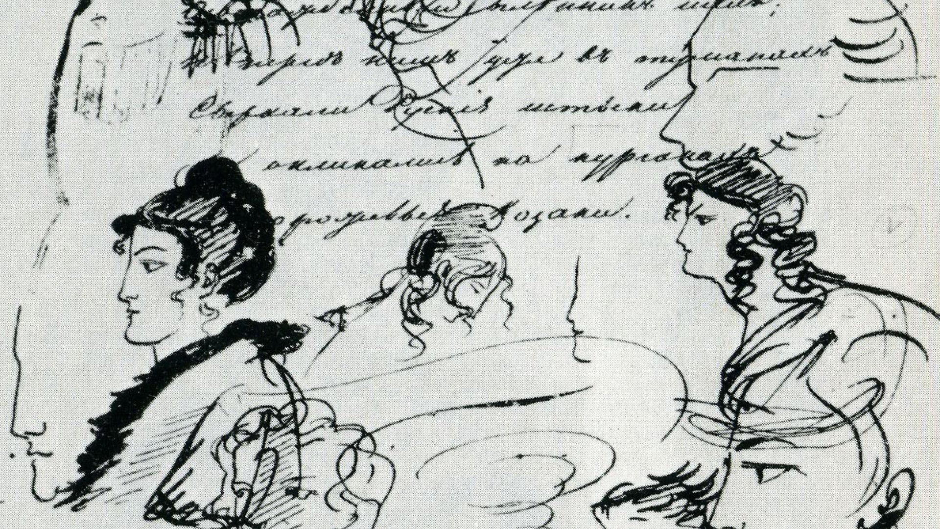 ![Рисунки Пушкина на полях его рукописей]()