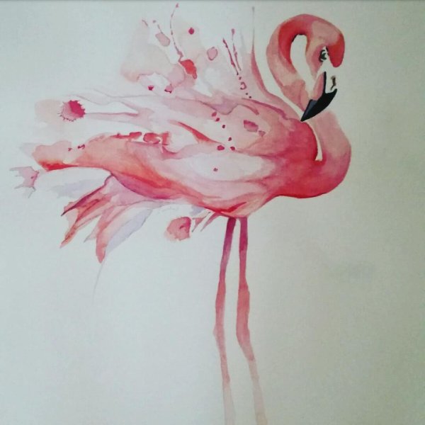Фламинго акварелью