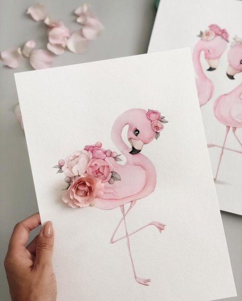 ![Розовый Фламинго акварель]()