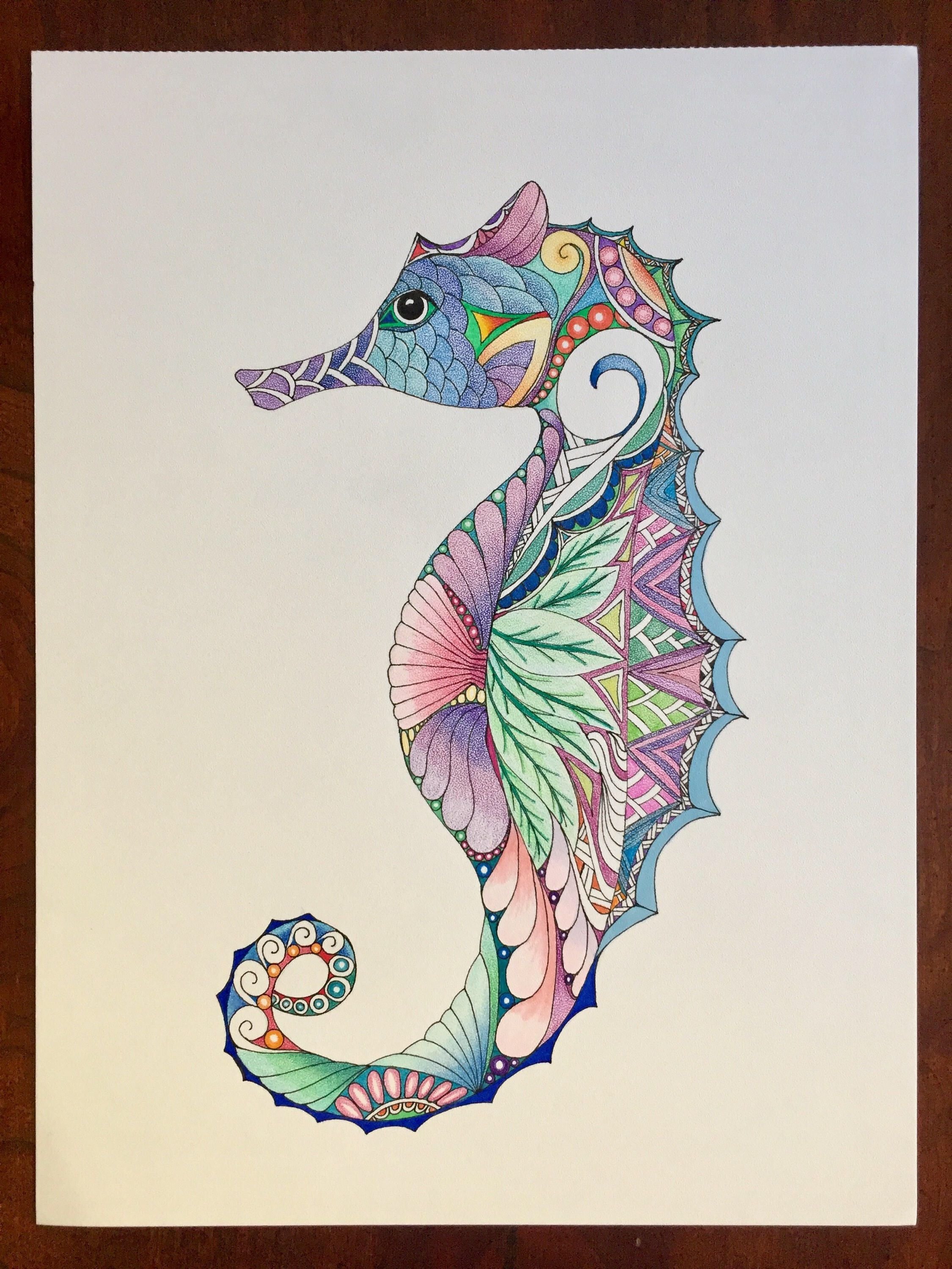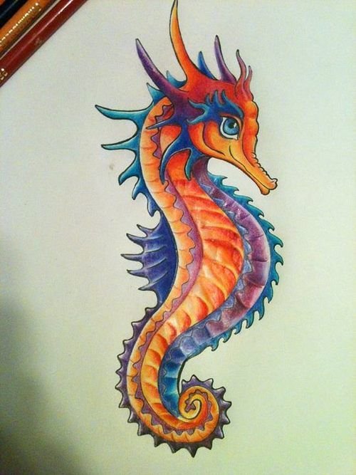 ![Морской конек цветными карандашами]()
