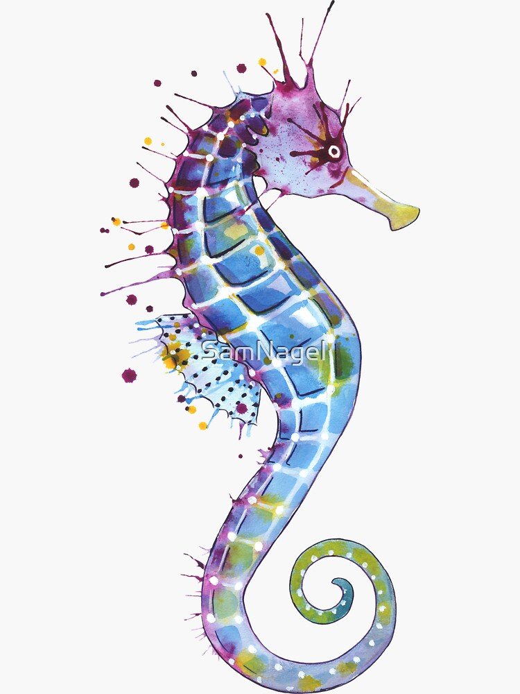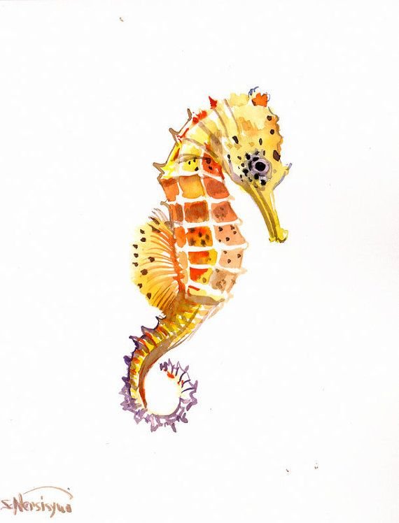 ![Морской конек акварель]()