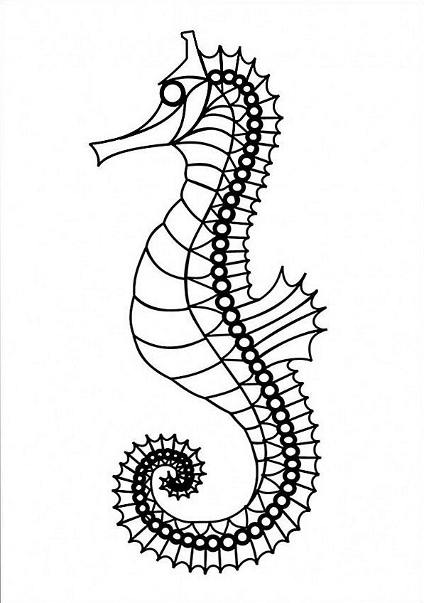 ![Морской конек раскраска]()
