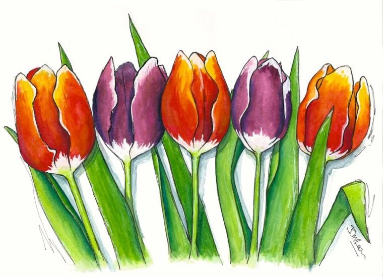 ![Тюльпаны акварель Диана Митчелл]()