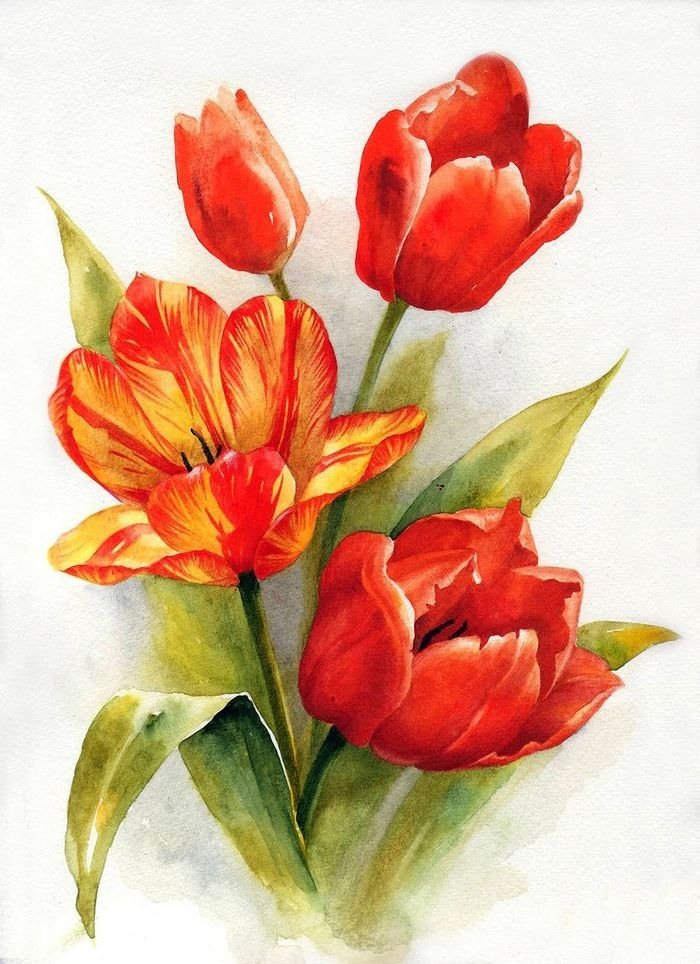 ![Тюльпаны акварелью]()