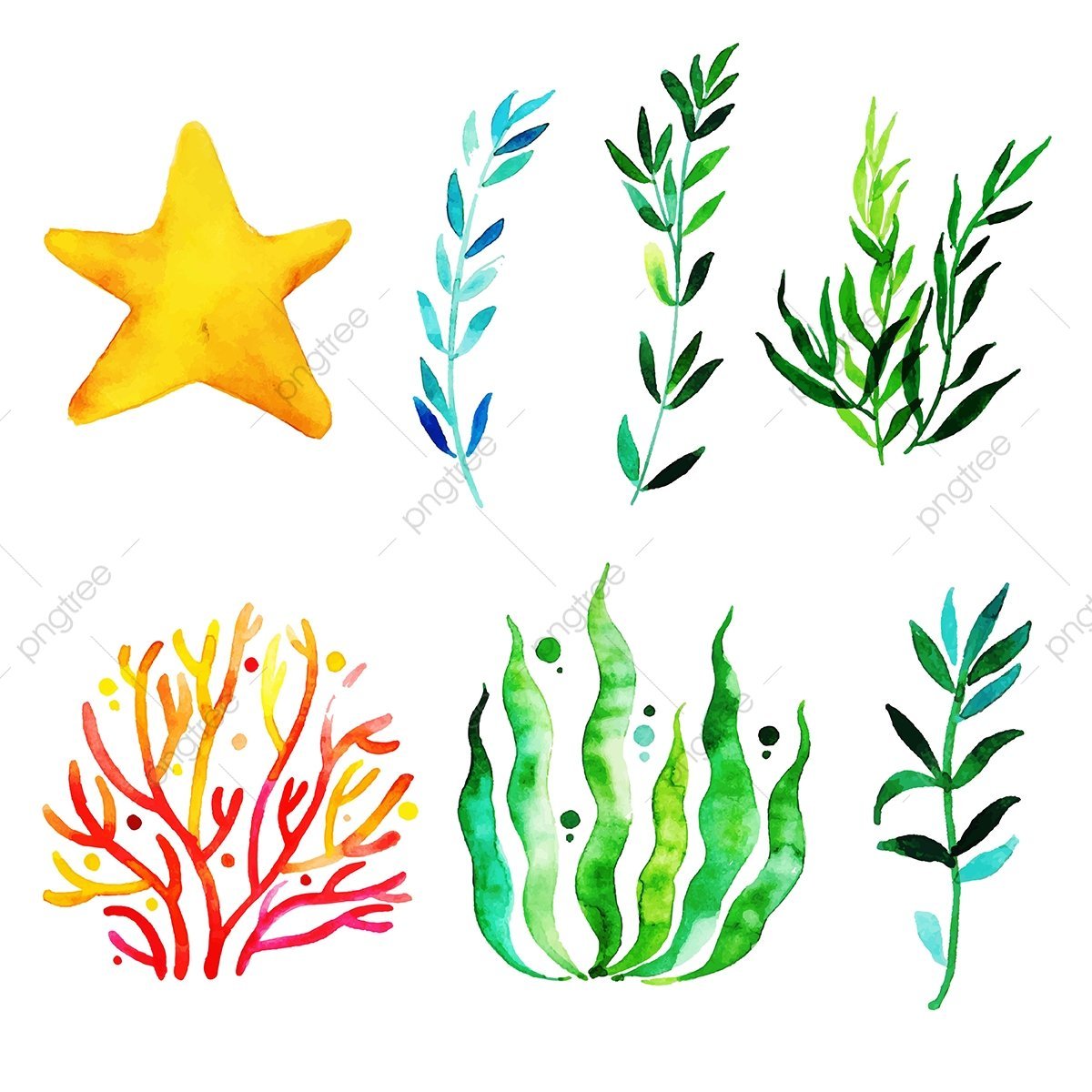 ![Морские водоросли акварель]()