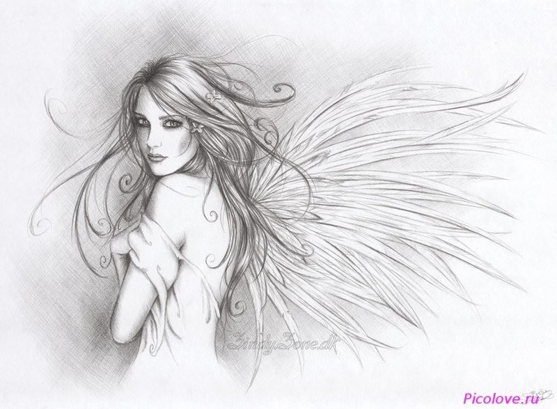 Рисунки ангелов карандашом
