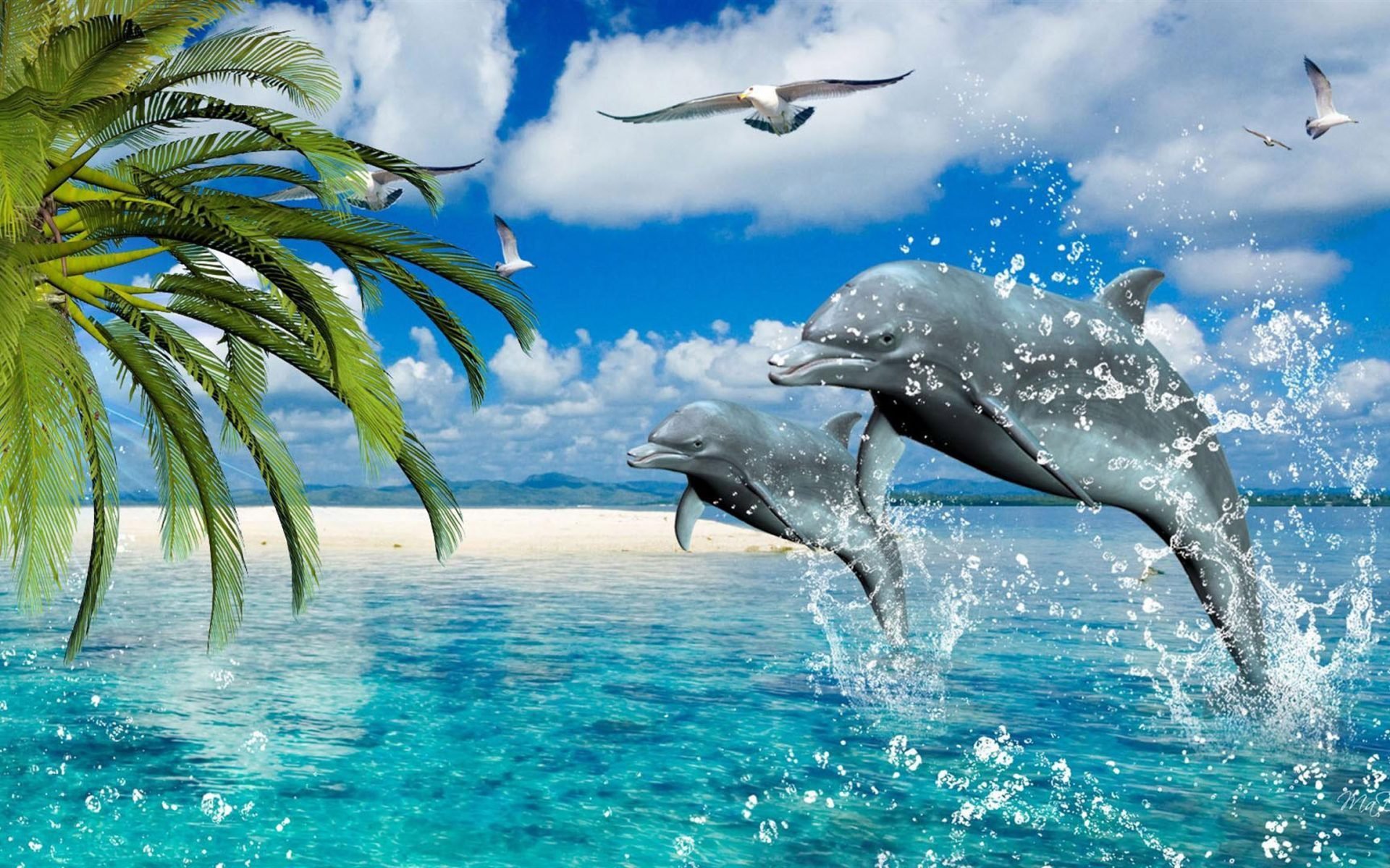 ![Дельфины в море]()