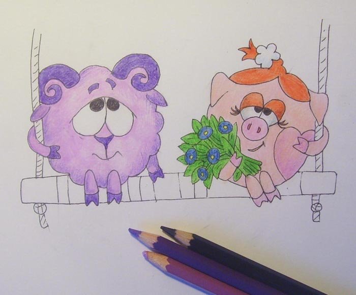 Смешарики цветными карандашами для детей