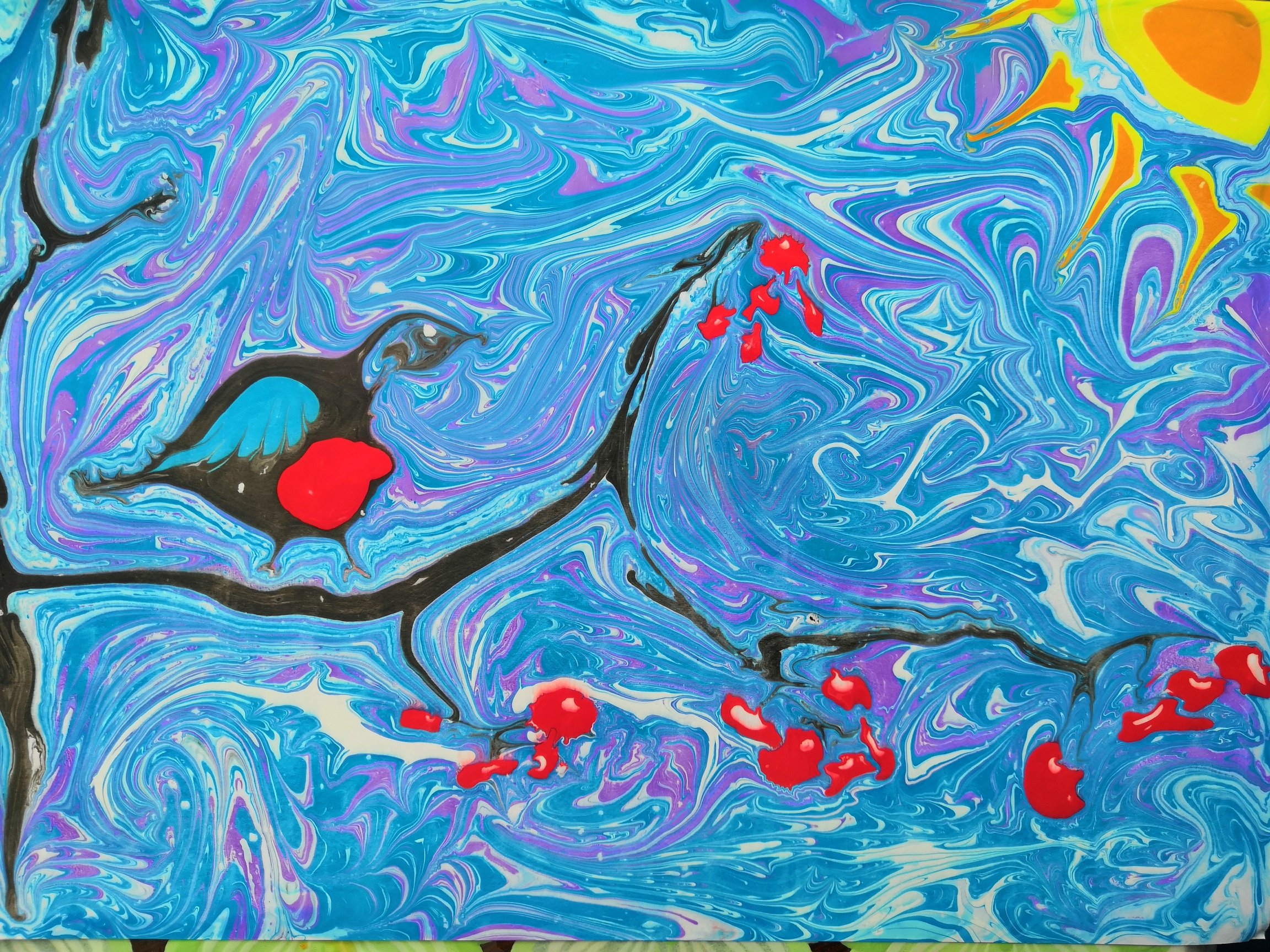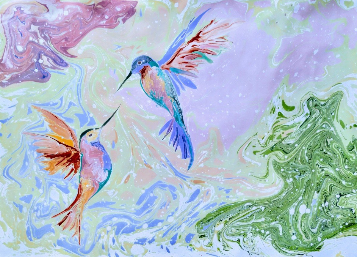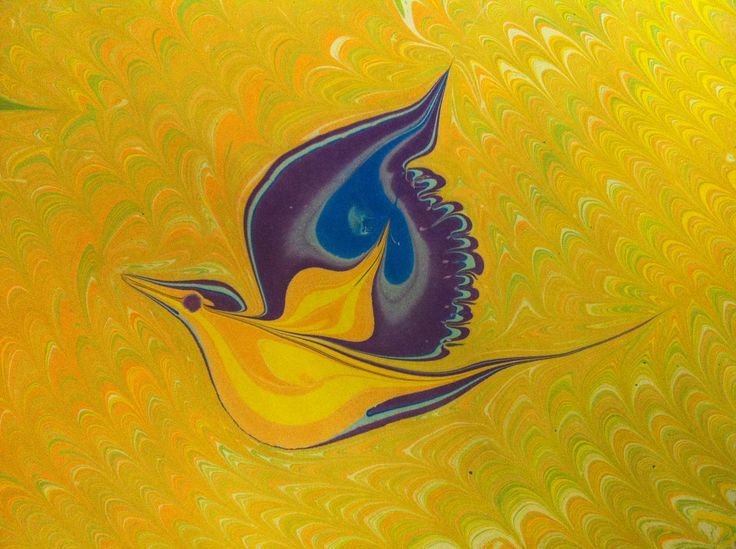 ![Птица в технике эбру]()