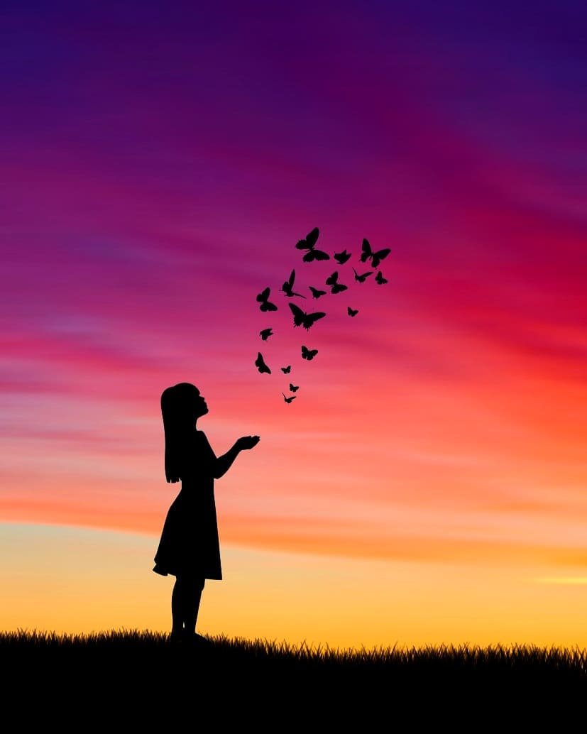 ![Силуэт на фоне заката]()