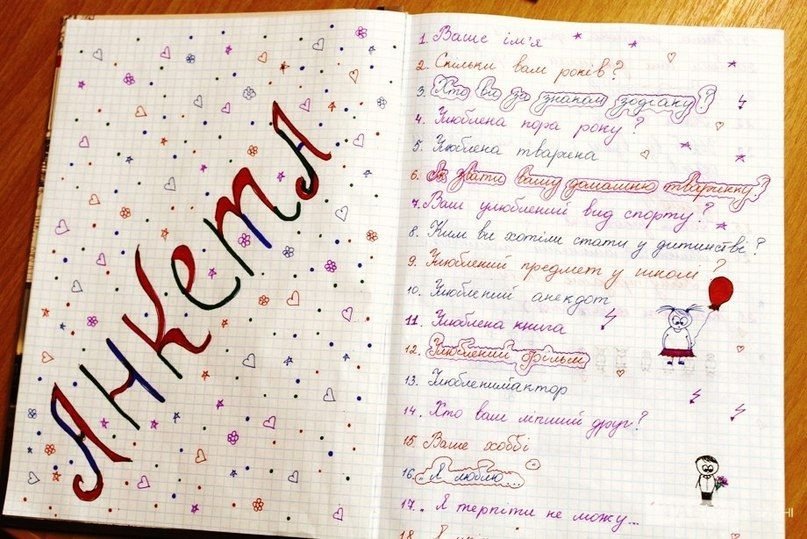 Идея для своей анкеты в личном дневнике