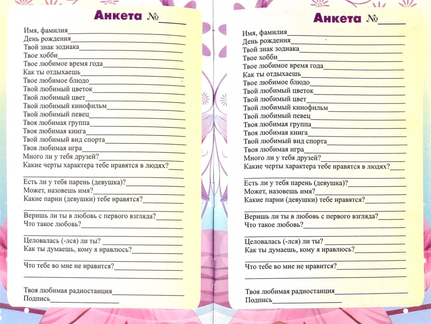 Анкета для девчонок