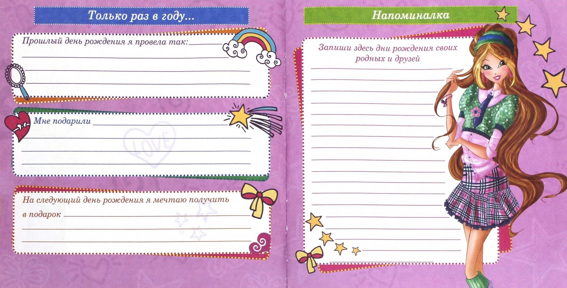 ![Дневник анкета для девочек]()