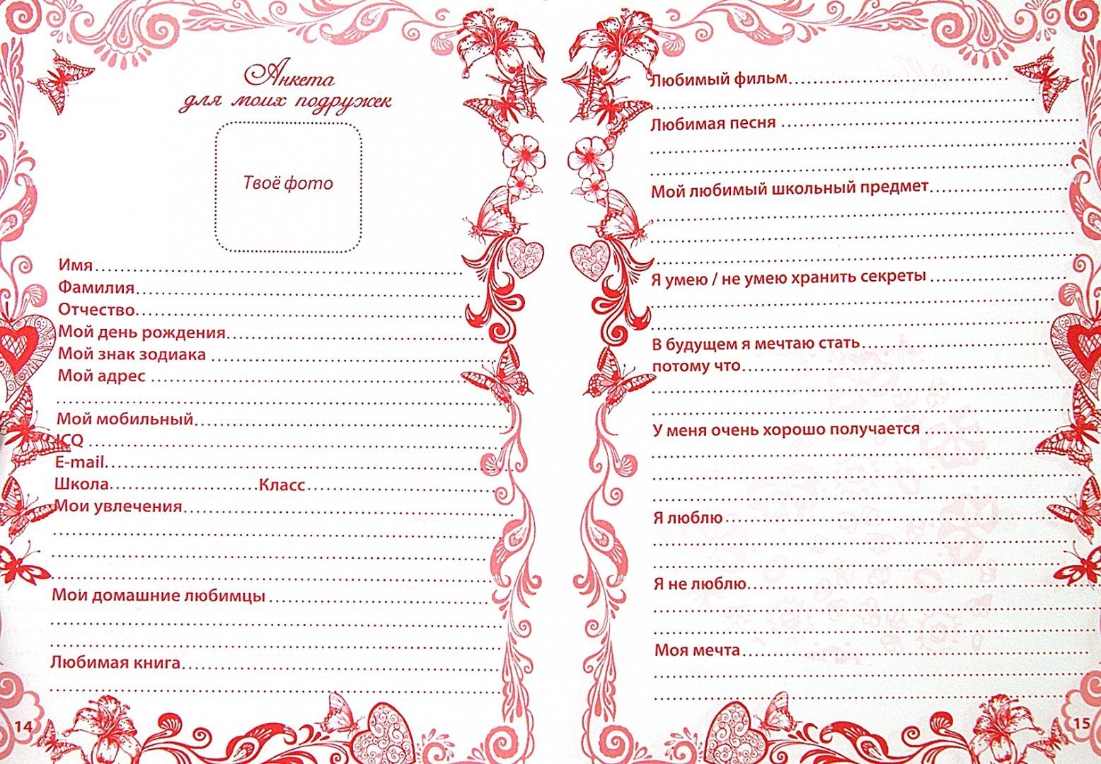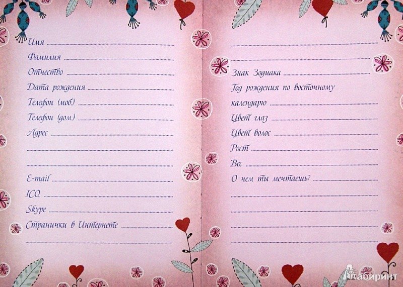 ![Анкета в личный дневник]()