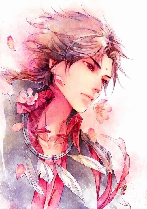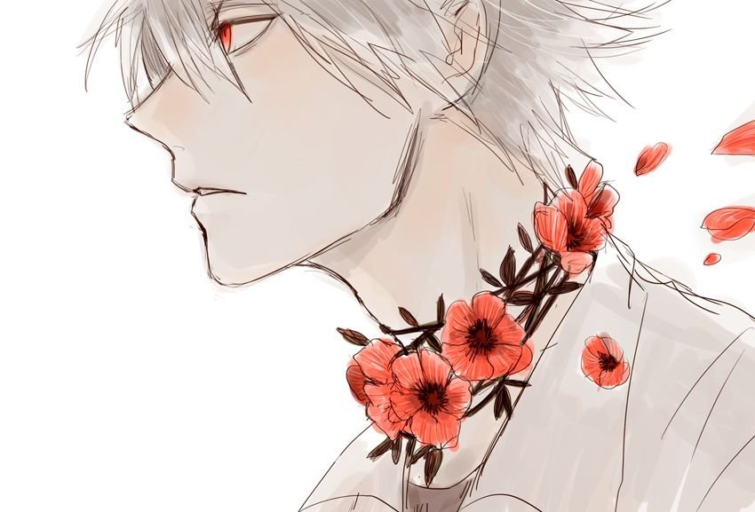 ![Парень с цветами арт]()