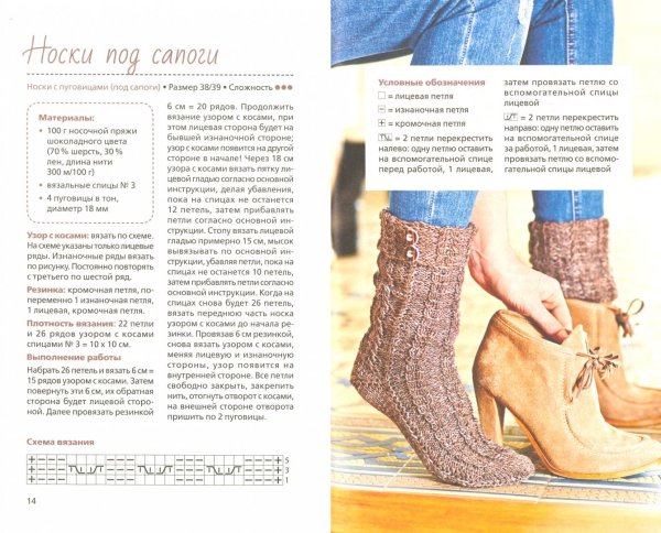 Схема вязания носков с косами спицами