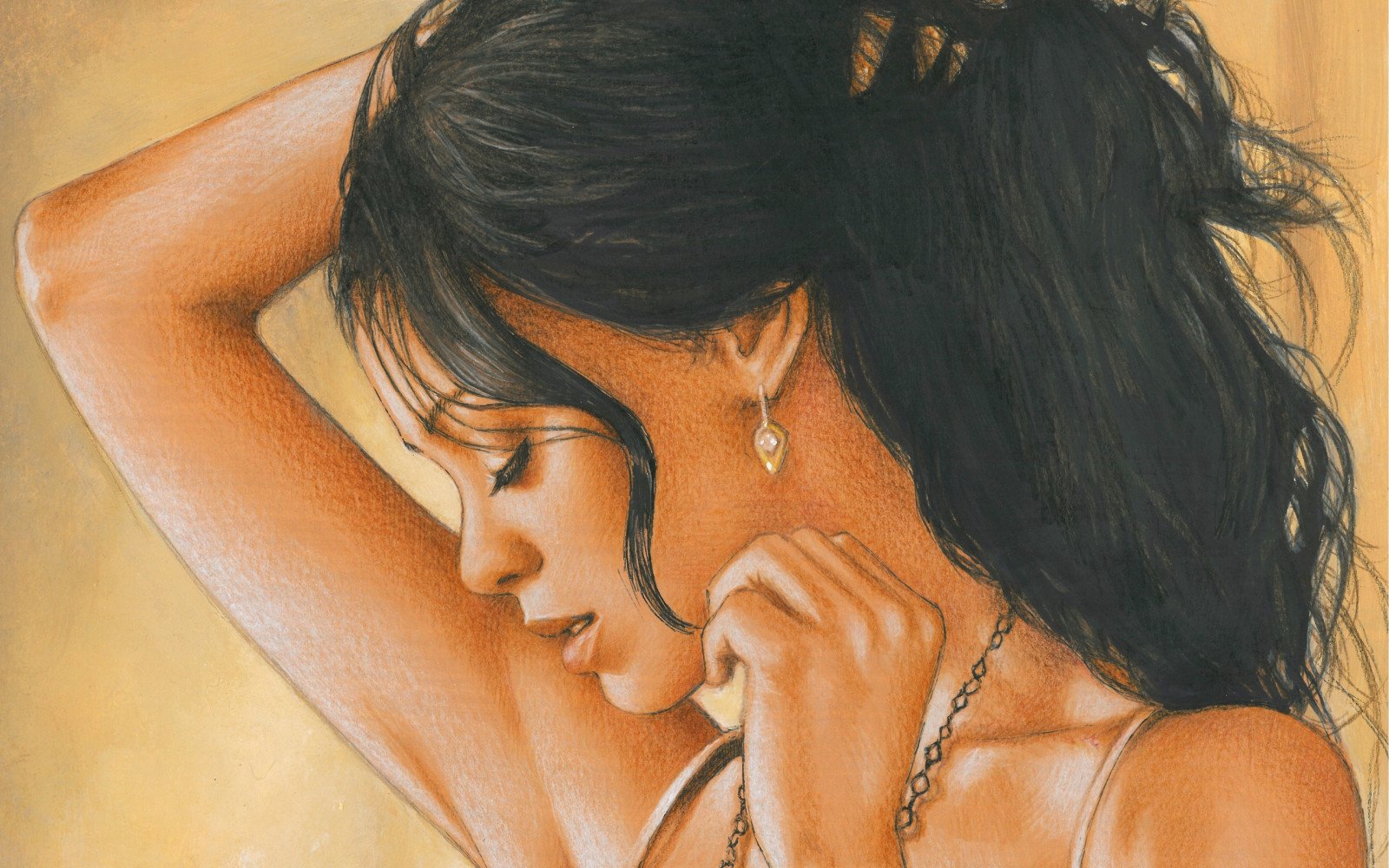 ![Красивая брюнетка рисунок]()