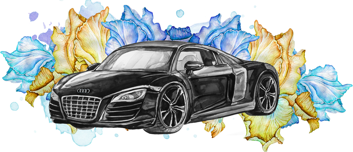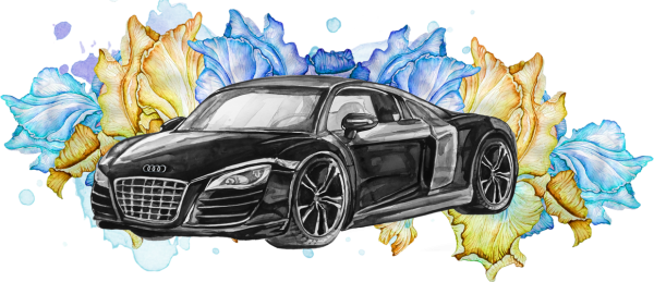 ![Черная машина акварелью]()