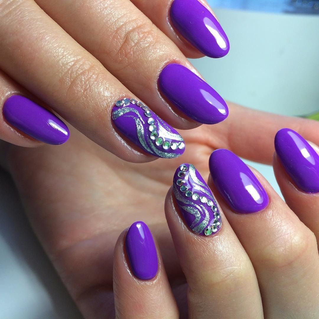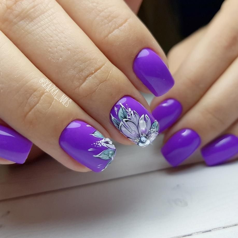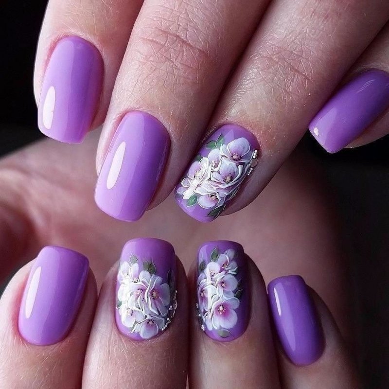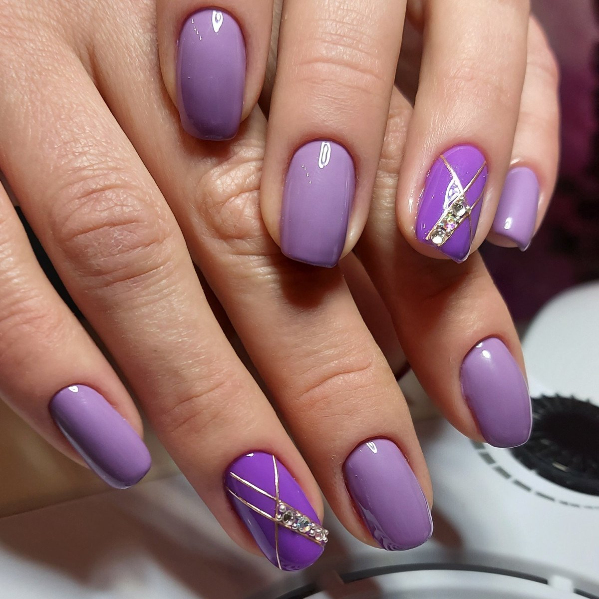 ![Маникюр на короткие ногти 2021 лиловый цвет]()