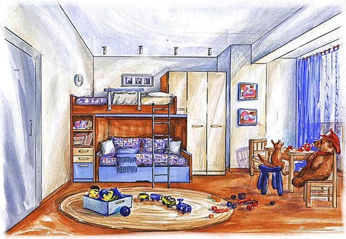 ![Рисование интерьера комнаты для детей]()