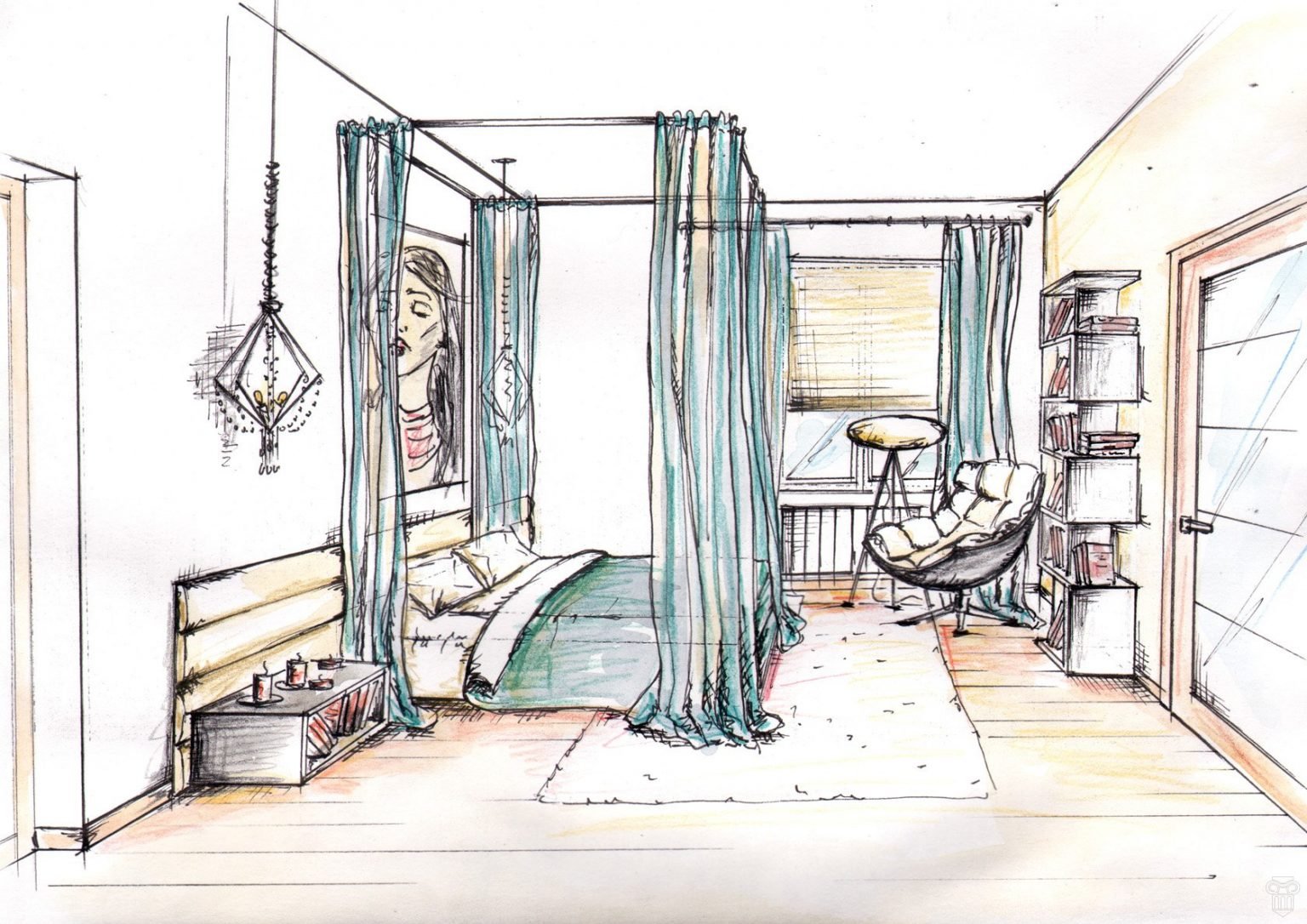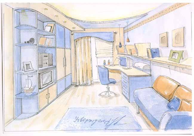 ![Эскиз интерьера комнаты подростка]()