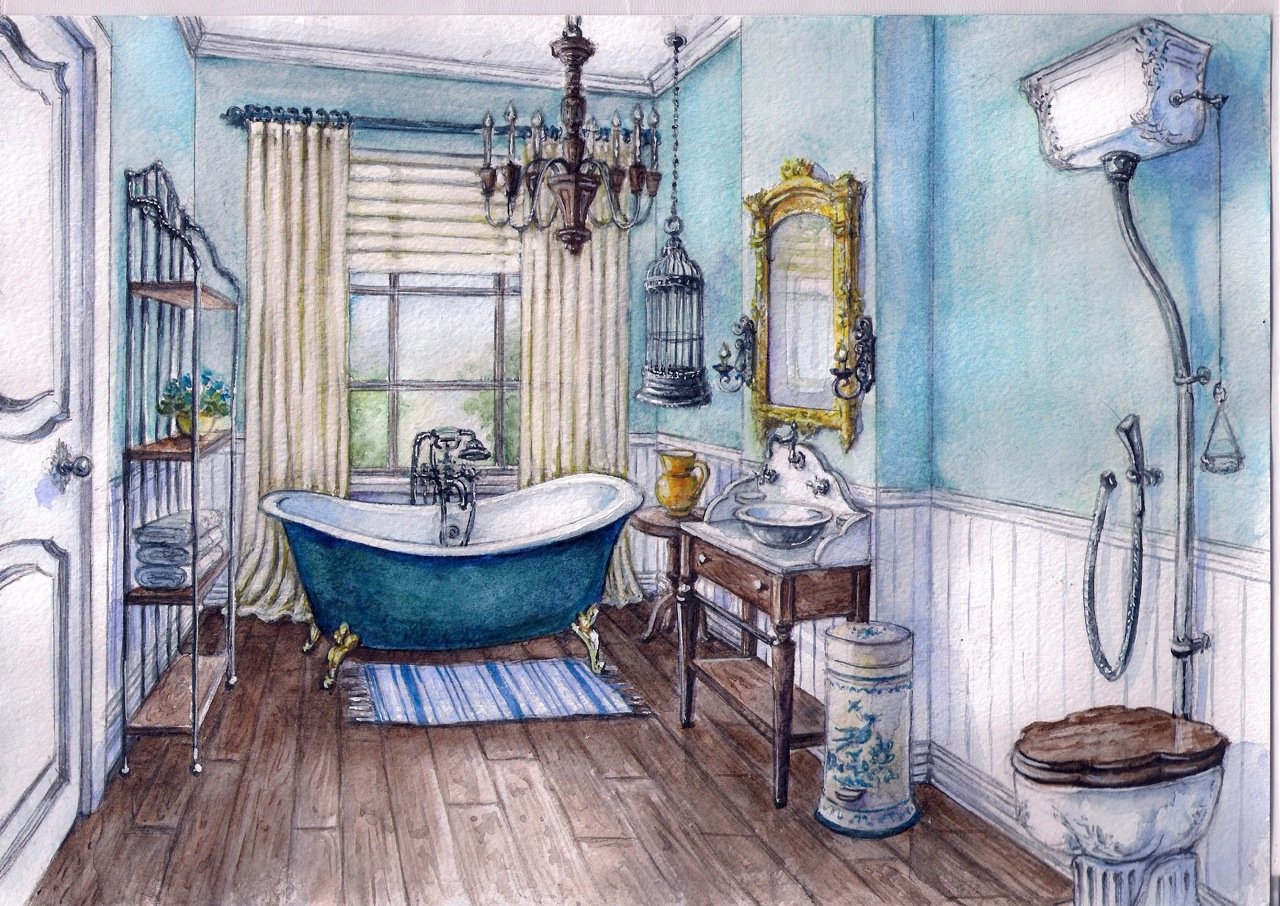 ![Ванна интерьер акварель]()