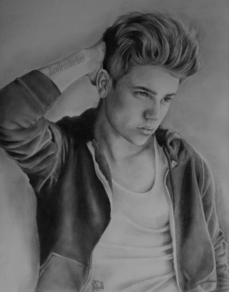 ![Портрет Джастина Бибера карандашом]()