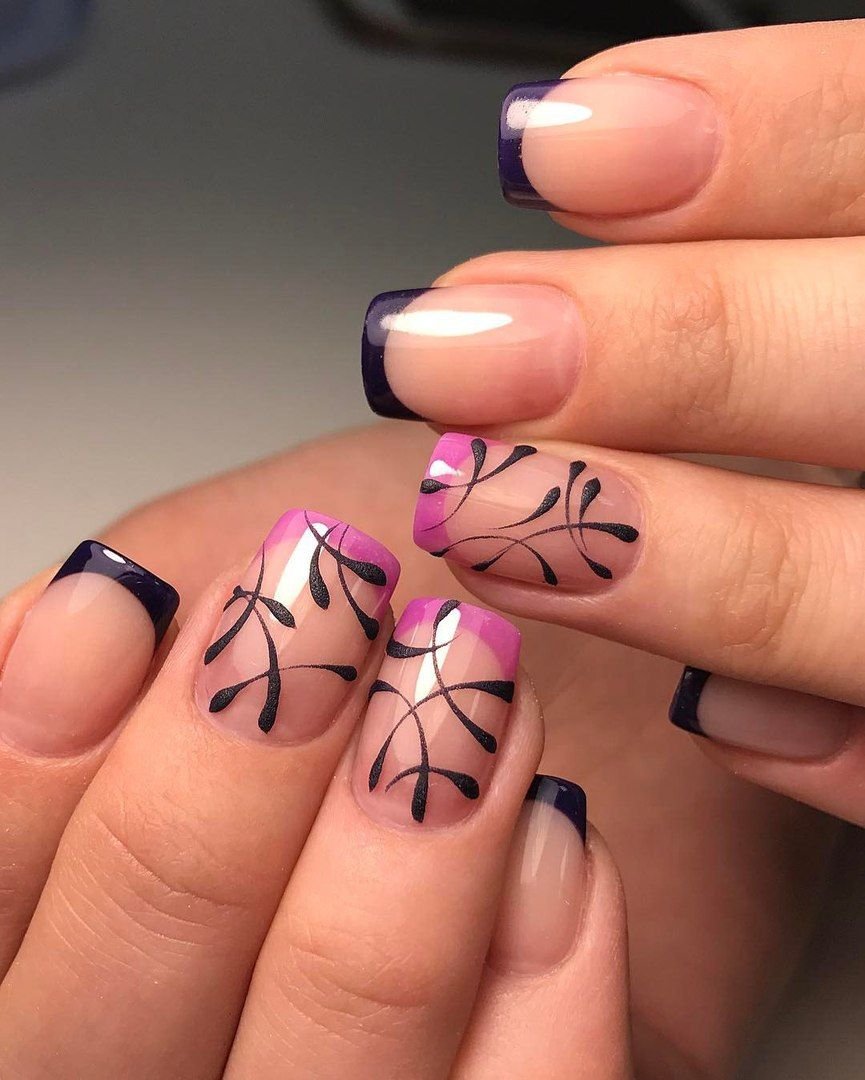 Сиреневые ногти с черным френчем