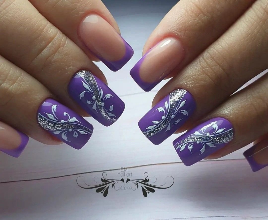 ![Ногти сиреневые с рисунком]()