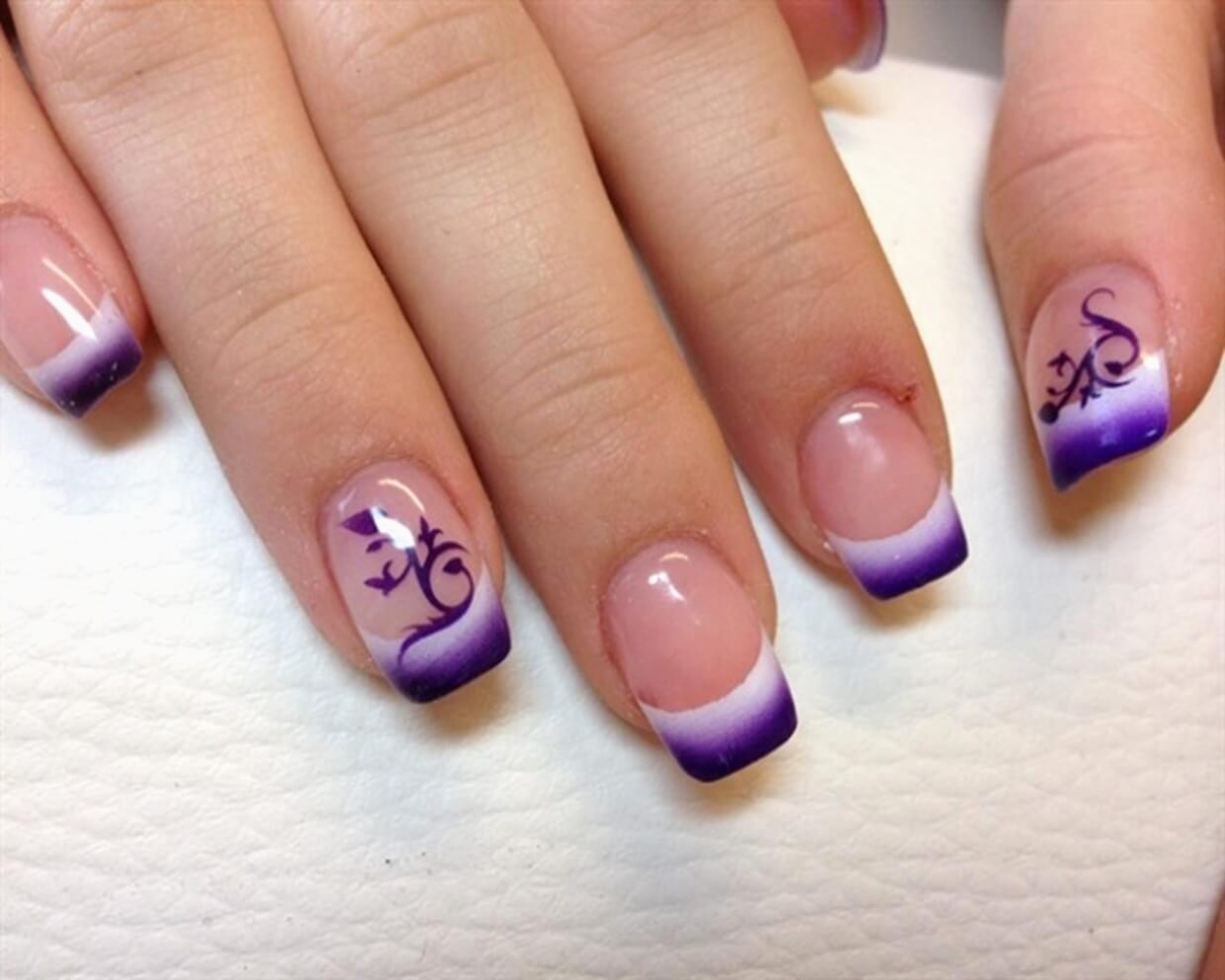 Маникюр сиреневый френч на короткие ногти