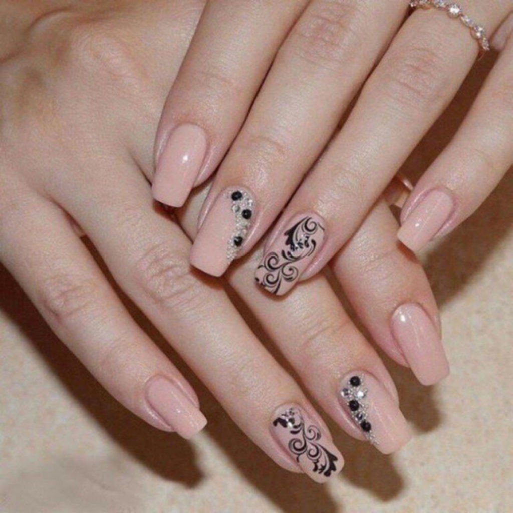 Маникюр бежевый с рисунком
